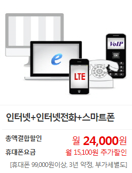 - 유무선결합서비스 가입조건: olleh인터넷 명의자 기준으로 집전화/인터넷전화/tv/모바일 명의자가 동일인 이거나 가족관계일 경우